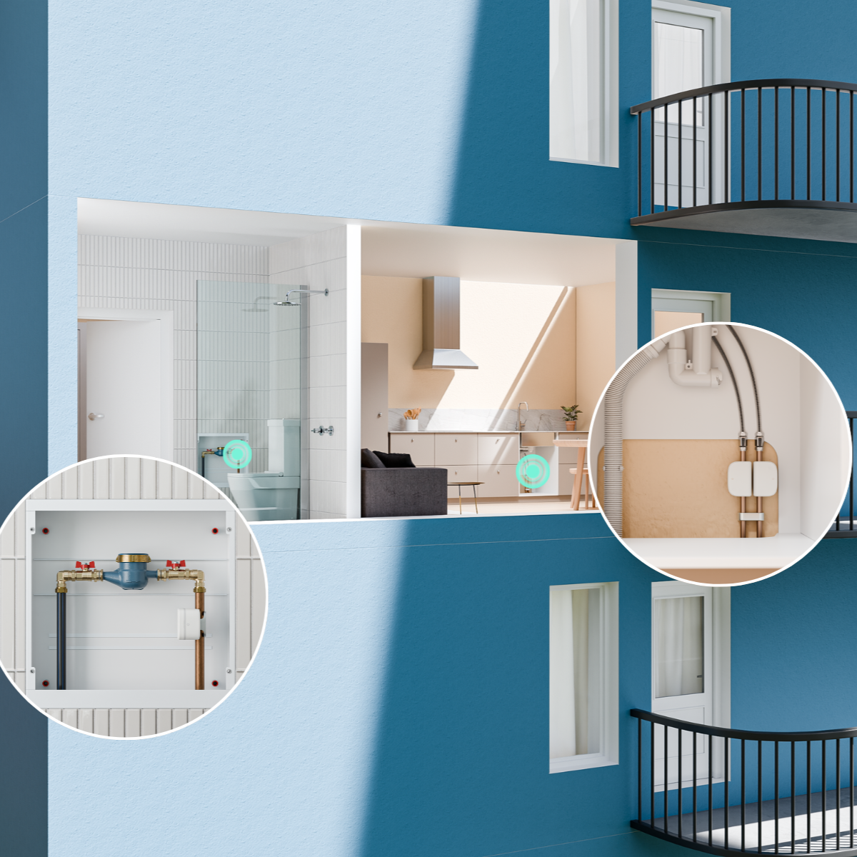 In apartments, you can place Water Grip on the water inlet pipe or locally to keep track of specific rooms.